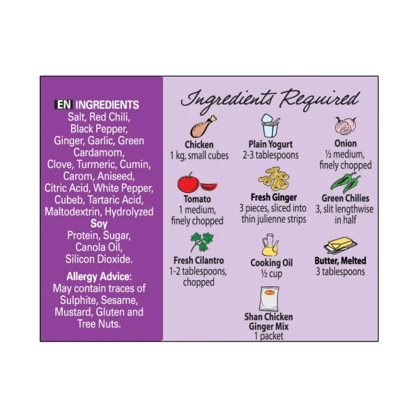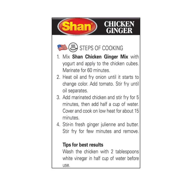 Shan Chicken Ginger Mix has the perfect blend of spices to help you prepare zesty stir-fried Chicken with a zing of ginger for an appetizing treat.