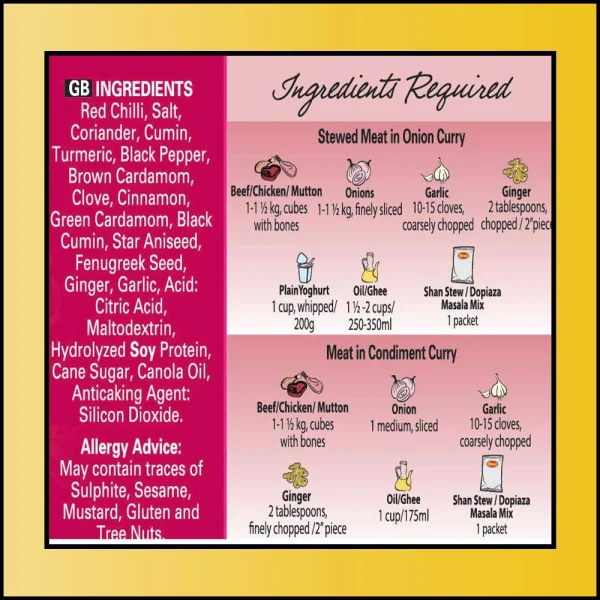 Shan Stew/Dopiaza Masala helps you create the authentic meat condiment curry at home.