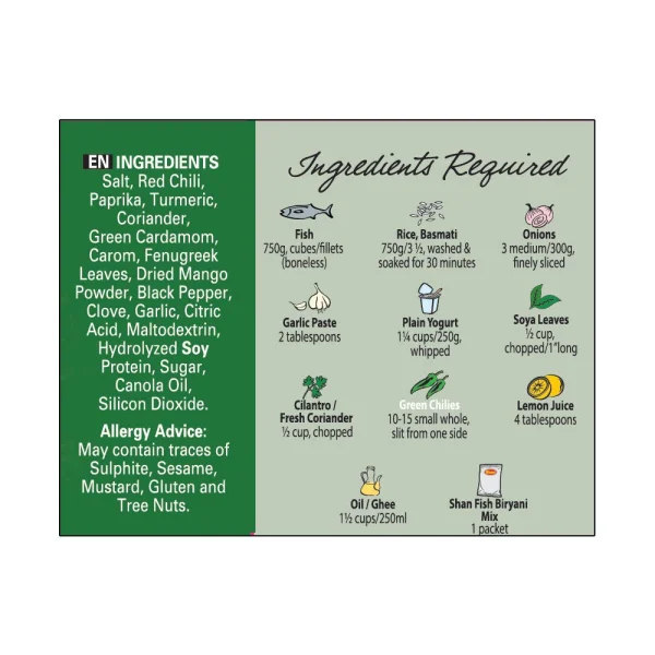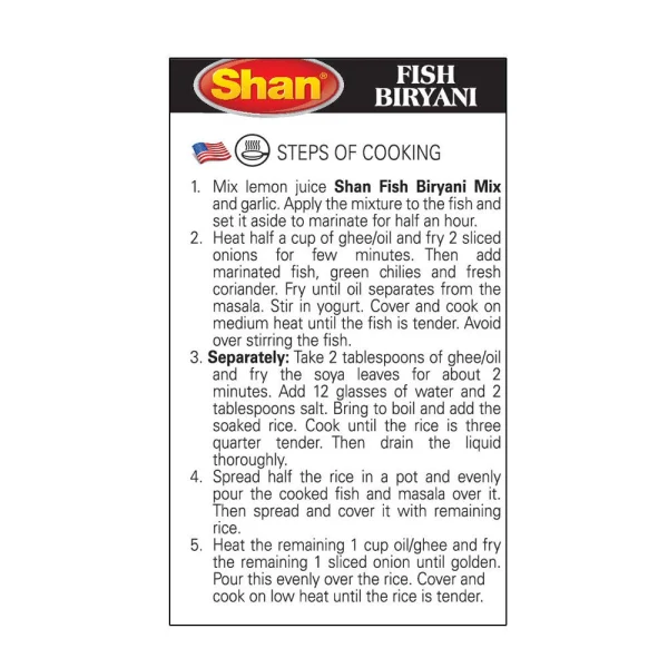 Shan Fish Biryani Mix has a perfect blend of rich and aromatic spices to help you rejoice the traditional taste of Fish Biryani.