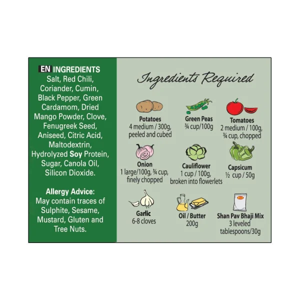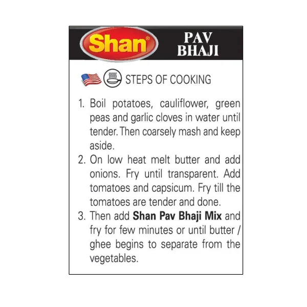 Shan Pav Bhaji Masala Mix helps you prepare delicious stir-fried vegetable curry for your everyday meal.