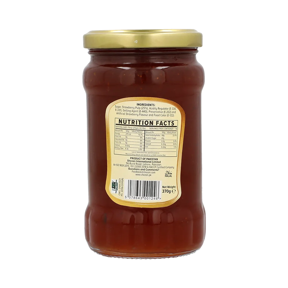 Spread it on toast, bagels, or fresh bread for a delightful breakfast or snack. Swirl it into yogurt or oatmeal for a burst of fruity goodness. Top pancakes, waffles, or French toast for a sweet and satisfying start to your day. Fill pastries or use it as a base for delicious desserts. Shezan Strawberry Jam comes in a convenient glass bottle, ensuring the berry love keeps flowing!